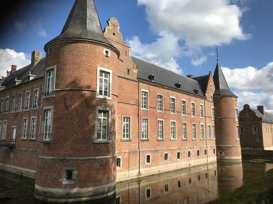 Schloss Alden Biesen, ein romantisches Wasserschloss, das auf eine Kommende des Deutschen Ordens zurückgeht und in den mehr als 700 Jahren seines Bestehens mehrfach erweitert wurde - auch um